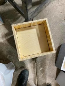 I made “floors” a few inches from the top to hold the sand, caulked the joints to keep the sand in, and ironed on veneer edge banding to cover the plywood end grain that was still visible from the top.