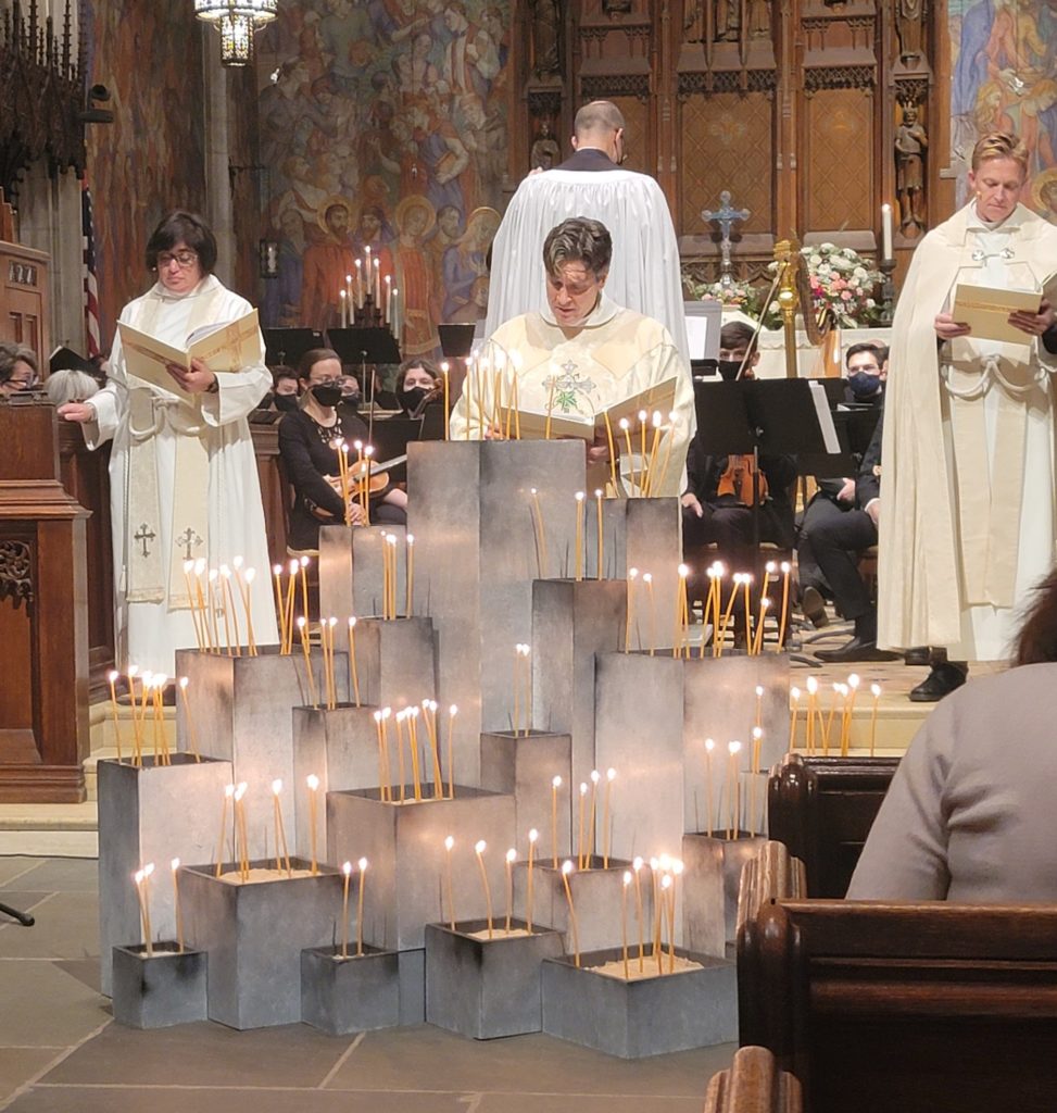 It would be fitting if this were to become a permanent tradition. The Biblical connections are so numerous, and how the sculpture is brought to life by the congregation is memorable. (Perhaps a surrogate candle placer could be employed to include the Church at Home community?)