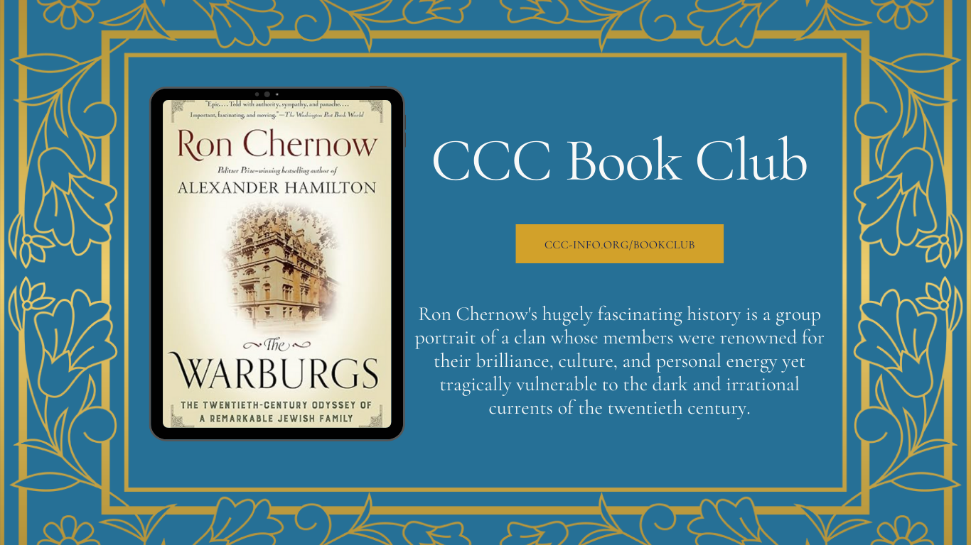 The CCC Book Club will meet again on Monday, February 23, 2026 at 7 PM via Zoom. The selection for February is: The Warburgs: The Twentieth-Century Odyssey of a Remarkable Jewish Family, by Ron Chernow. The book is 725 pages. We will read up to page 364 for the February 23 date. The remainder we […] |